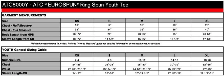 MJMS T-Shirt Size Charts